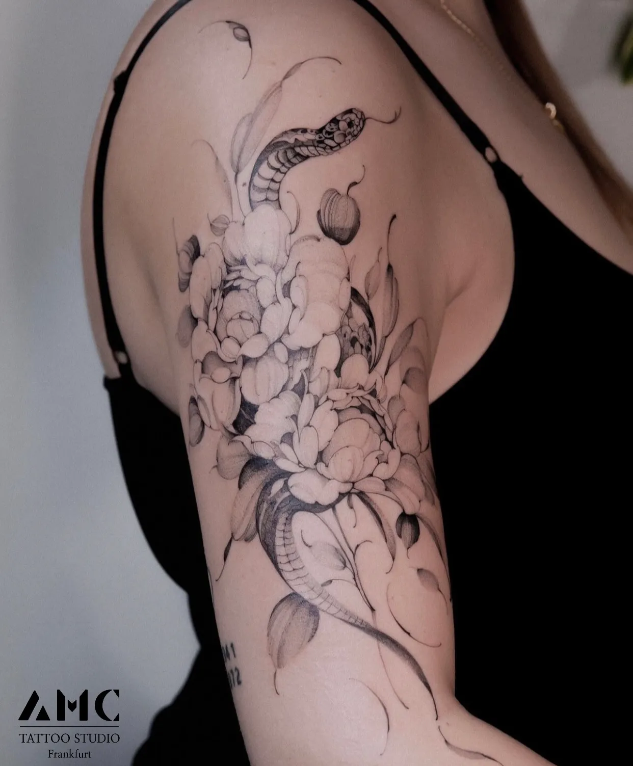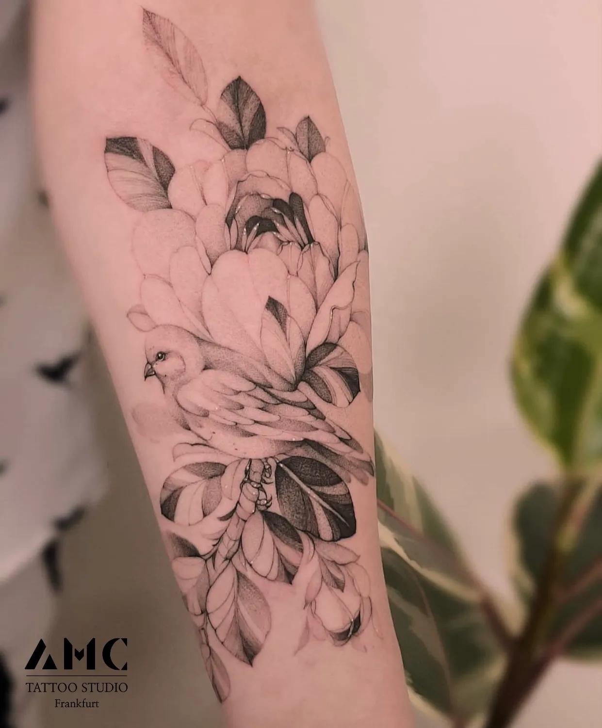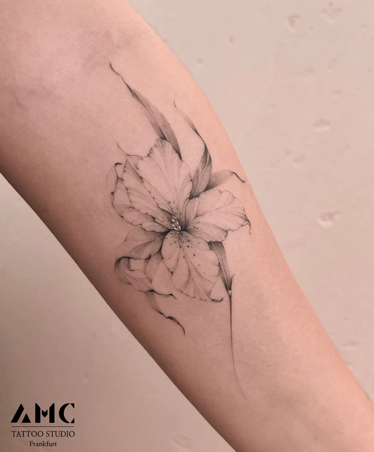 Unsere talentierte Meister-Tätowiererin, Anastasia ist eine Spezialistin für Fine line Tattoos und hat eine besondere Vorliebe für florale und ornamentale Designs. Ihre Kunstwerke bestechen durch ihre präzise Linienführung und Detailgenauigkeit, wodurch jedes Tattoo zu einem einzigartigen und eleganten Kunstwerk wird.